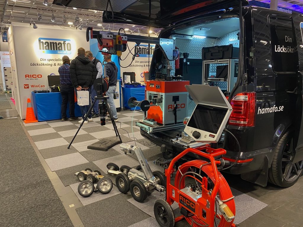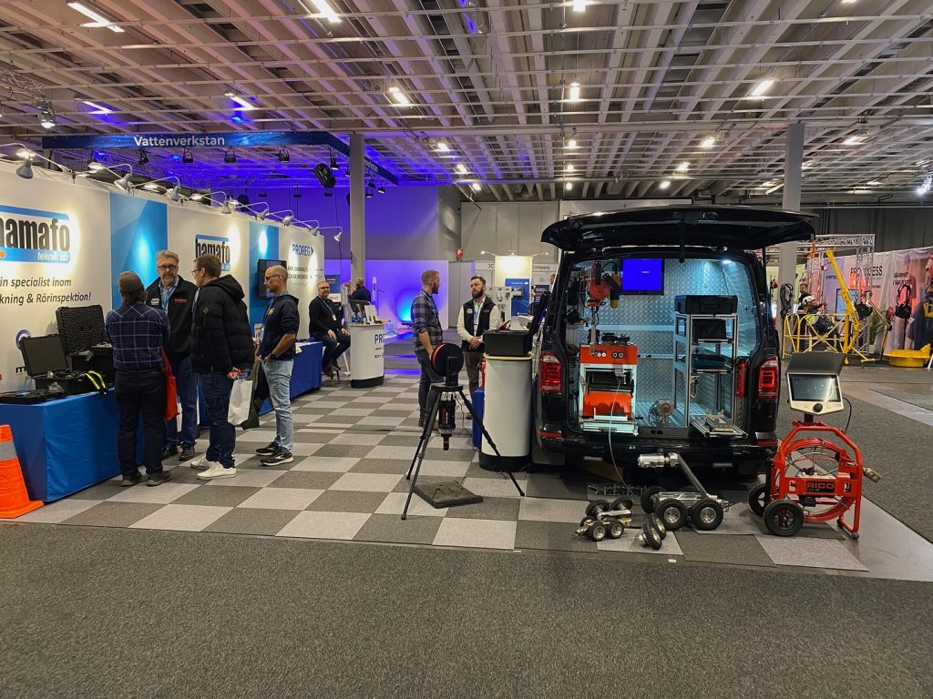 HAMAFO Teknik ställde ut på VATTEN2025 i Göteborg där vi visade vår mindre filmbuss (VW Transporter) med det nya CrossTouch HD systemet med kameravagnen TRAC-150 samt kameramodulen CAM-150.